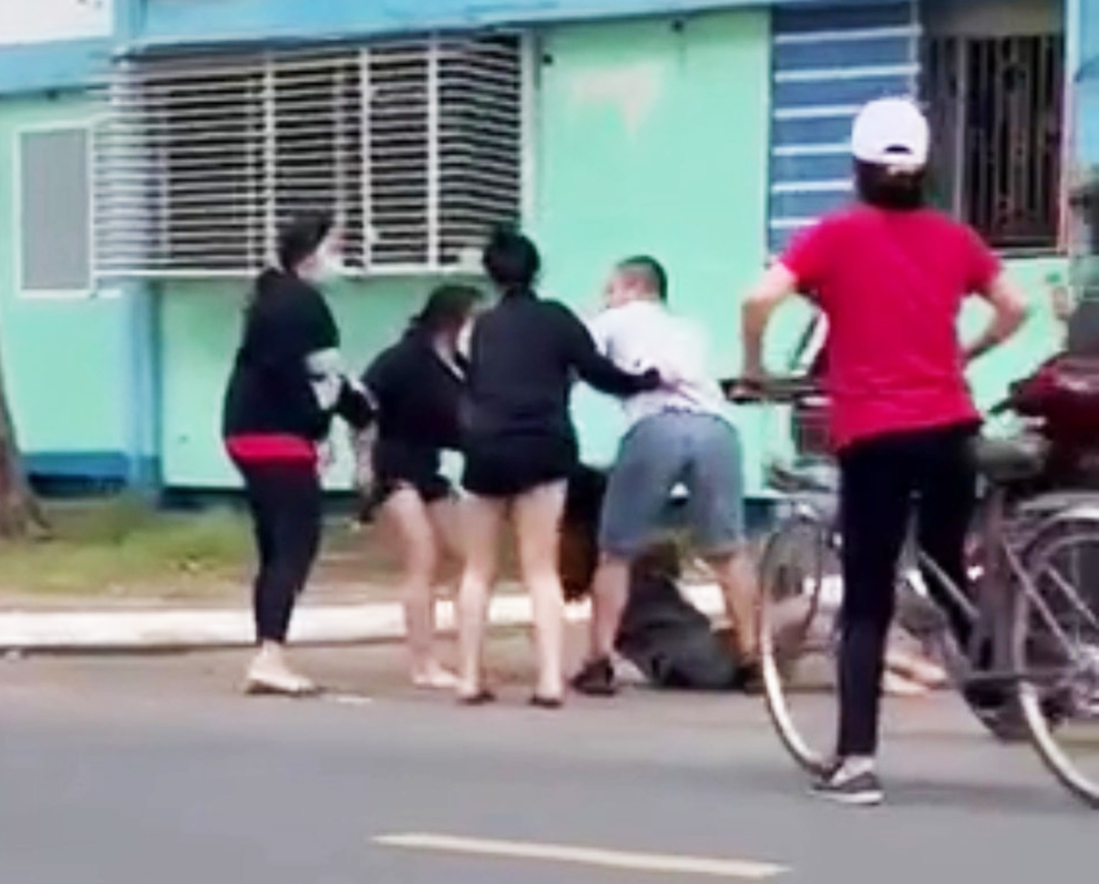 Trước đó, trên mạng xã hội lan truyền đoạn video clip dài hơn 30 giây, ghi lại cảnh 1 nữ sinh bị nhóm người dùng nón bảo hiểm vây đánh (gồm 3 nam, 5 nữ). Trong đó, 2 người nữ dùng nón bảo hiểm đánh liên tiếp vào vùng đầu nạn nhân, một số người còn lại đứng nhìn và quay clip.