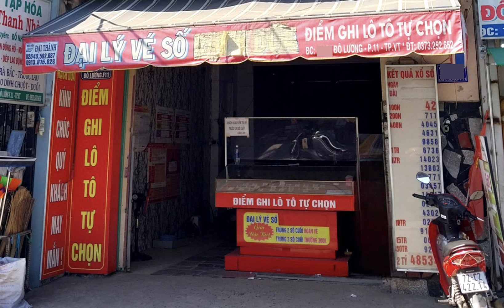 | Tiệm vé số nơi cơ quan công an bắt quả tang Thảo đang ghi đề cho con bạc. |