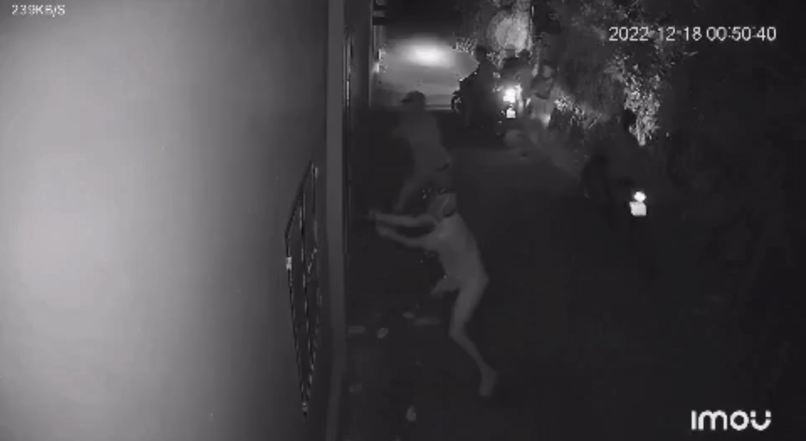 | Camera ghi lại cảnh nhóm thanh niên cầm hung khí đập phá nhà bà Th. |