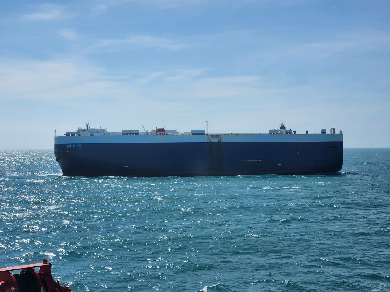 Tàu AH SHIN mang quốc tịch Panama. Tàu dài 199m, rộng 32m, cao 23,5m, tải trọng 21.503 tấn, đang chở 4.530 chiếc ô tô. Trên tàu có thuyền trưởng quốc tịch Panama và 21 thuyền viên đều mang quốc tịch Nga.