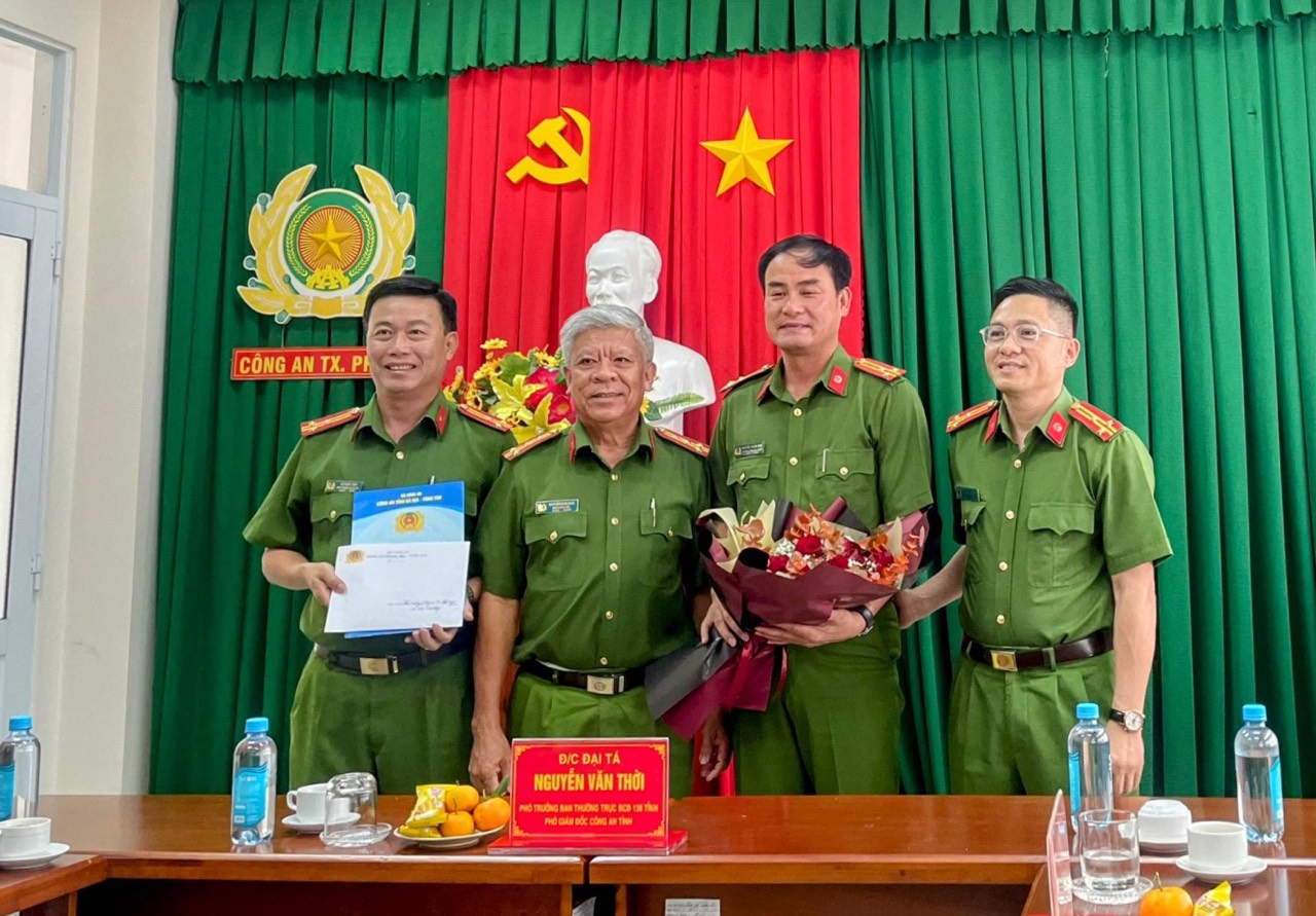 | Đại tá Nguyễn Văn Thời, Phó Giám đốc Công an tỉnh thăm, khen thưởng nóng CBCS Công an TX.Phú Mỹ |