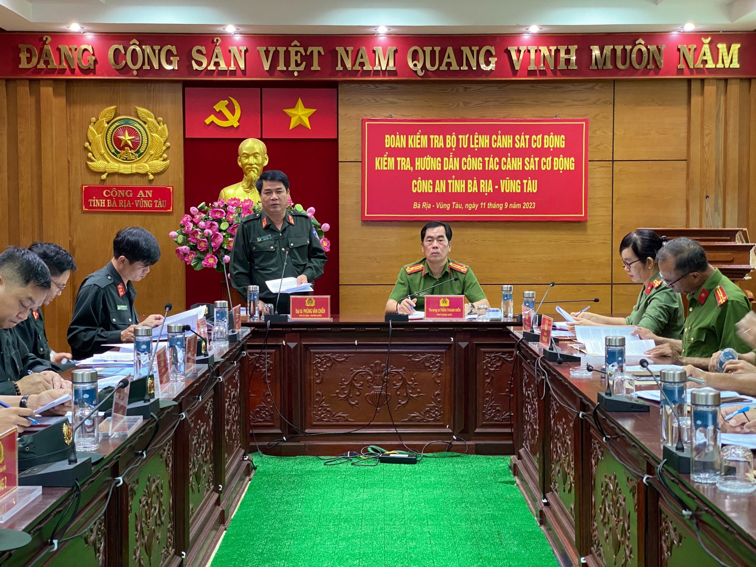 Tại buổi làm việc, đại diện Bộ tư lệnh Cảnh sát Cơ động đã công bố quyết định thành lập đoàn kiểm tra, hướng dẫn nghiệp vụ Cảnh sát Cơ động (CSCĐ) năm 2023, tại Công an tỉnh với 5 chuyên đề.