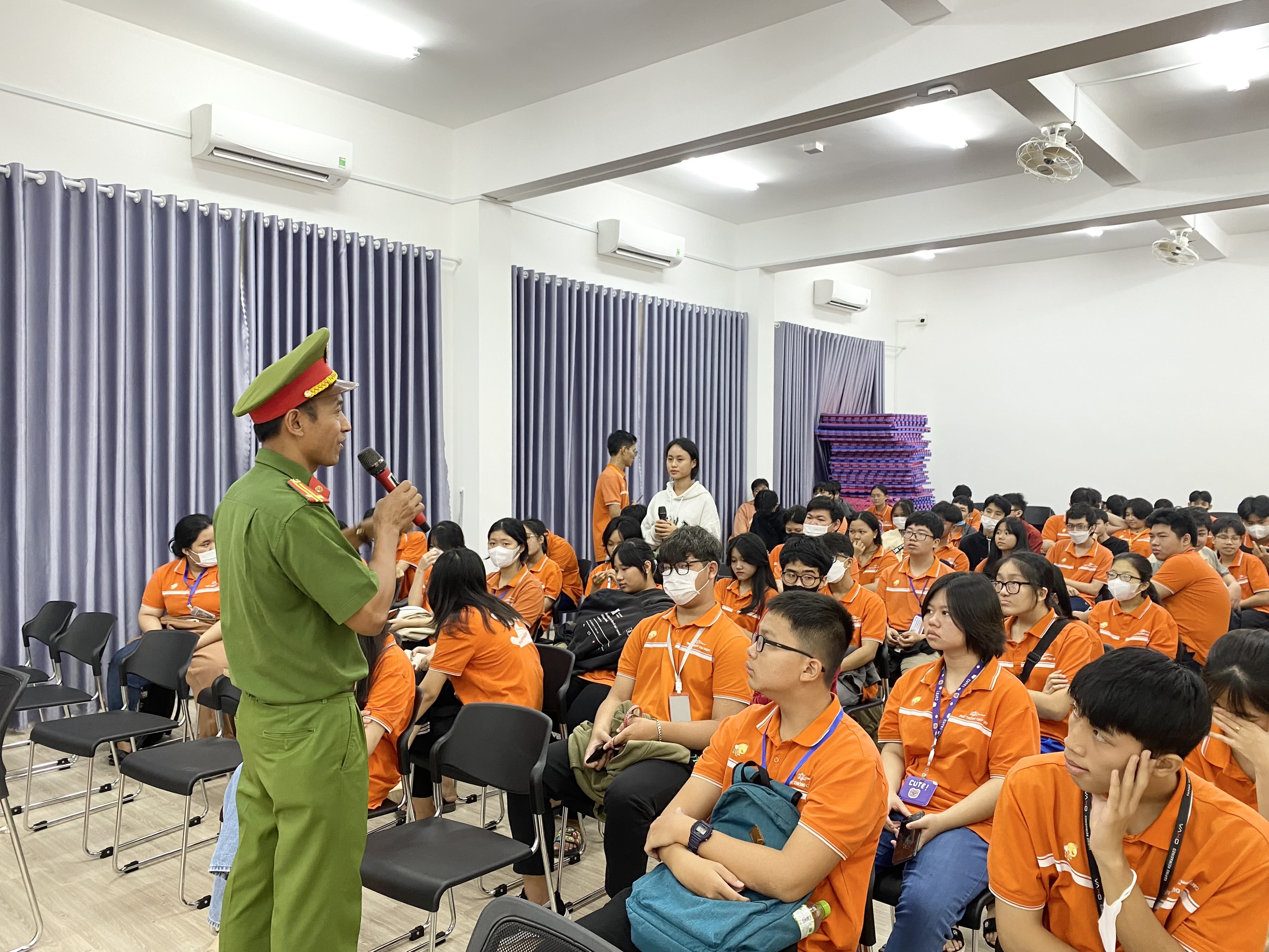 | Lãnh đạo công an phường Long Toàn (TP.Bà Rịa) thông tin, tuyên truyền về an ninh trật tự, an toàn giao thông, phòng chống cháy nổ cho học sinh, sinh viên Trường Phổ thông Cao Đẳng FPT Polytechnic . |