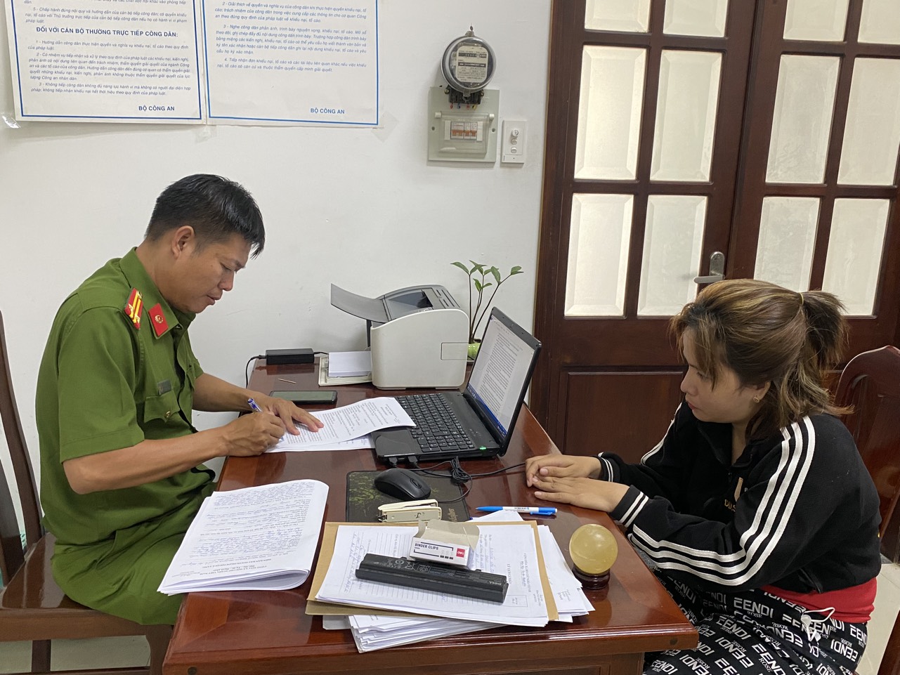 | Cán bộ công an làm việc với đối tượng Dài. |