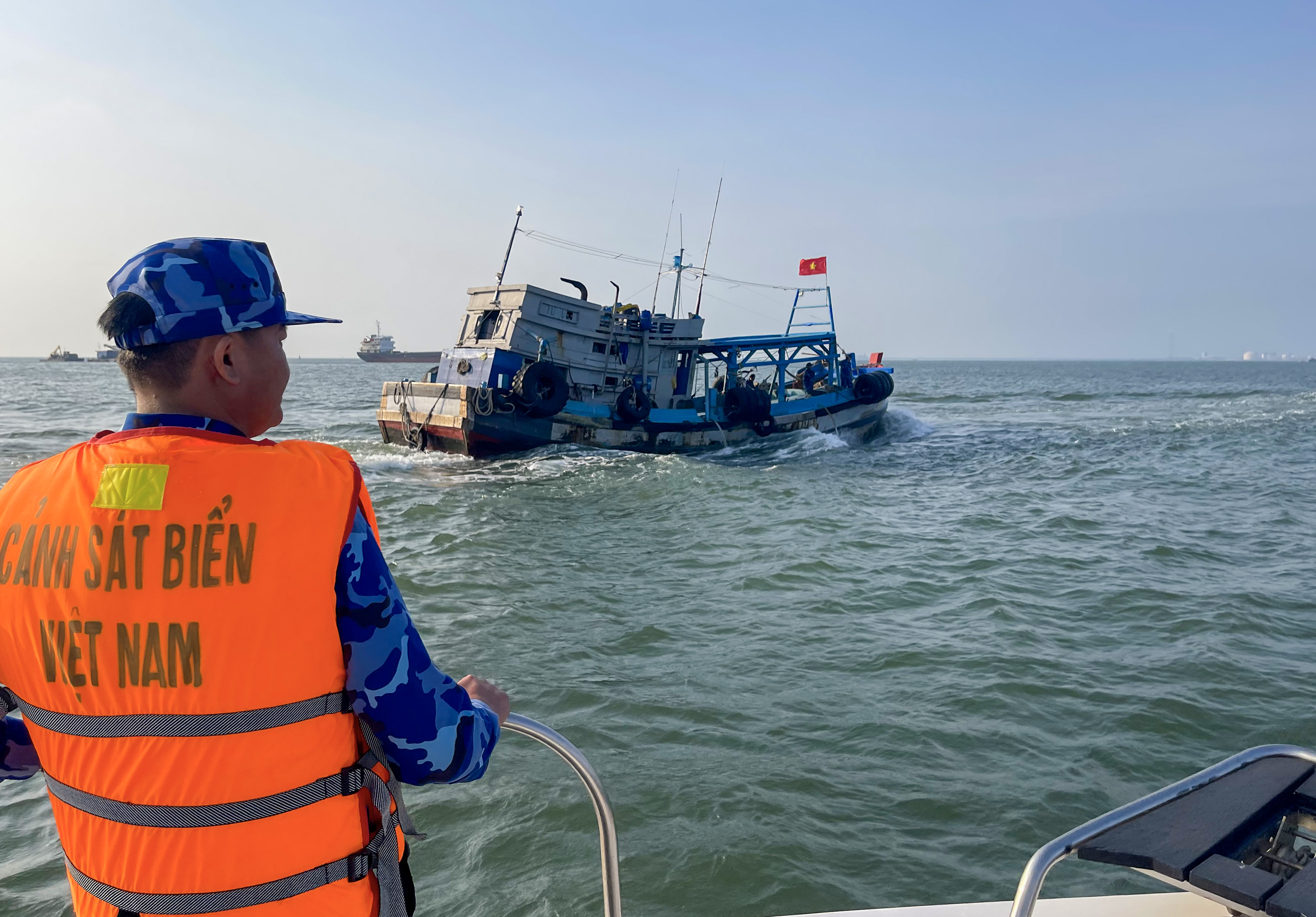 | Lực lượng chức năng của Bộ Tư lệnh Vùng Cảnh sát biển 3 dẫn giải phương tiện về cảng Hải đội 301 tại TP.Vũng Tàu. |