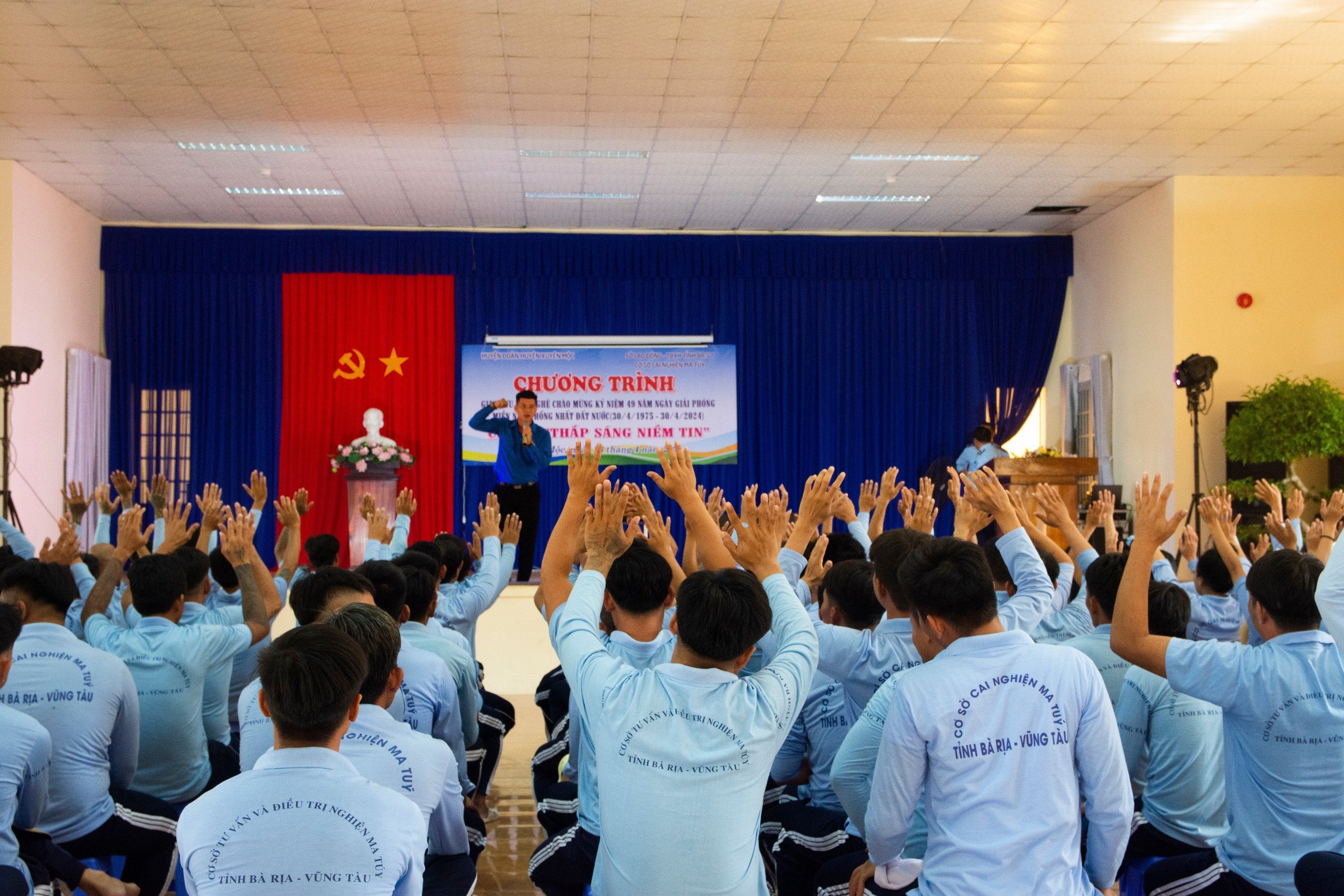 Ngày 23/4, Cơ sở Tư vấn và điều trị nghiện ma túy tỉnh (xã Hòa Hiệp, huyện Xuyên Mộc) phối hợp cùng Huyện đoàn Xuyên Mộc tổ chức Chương trình giao lưu văn nghệ cho các học viên với chủ đề "Thắp sáng niềm tin".