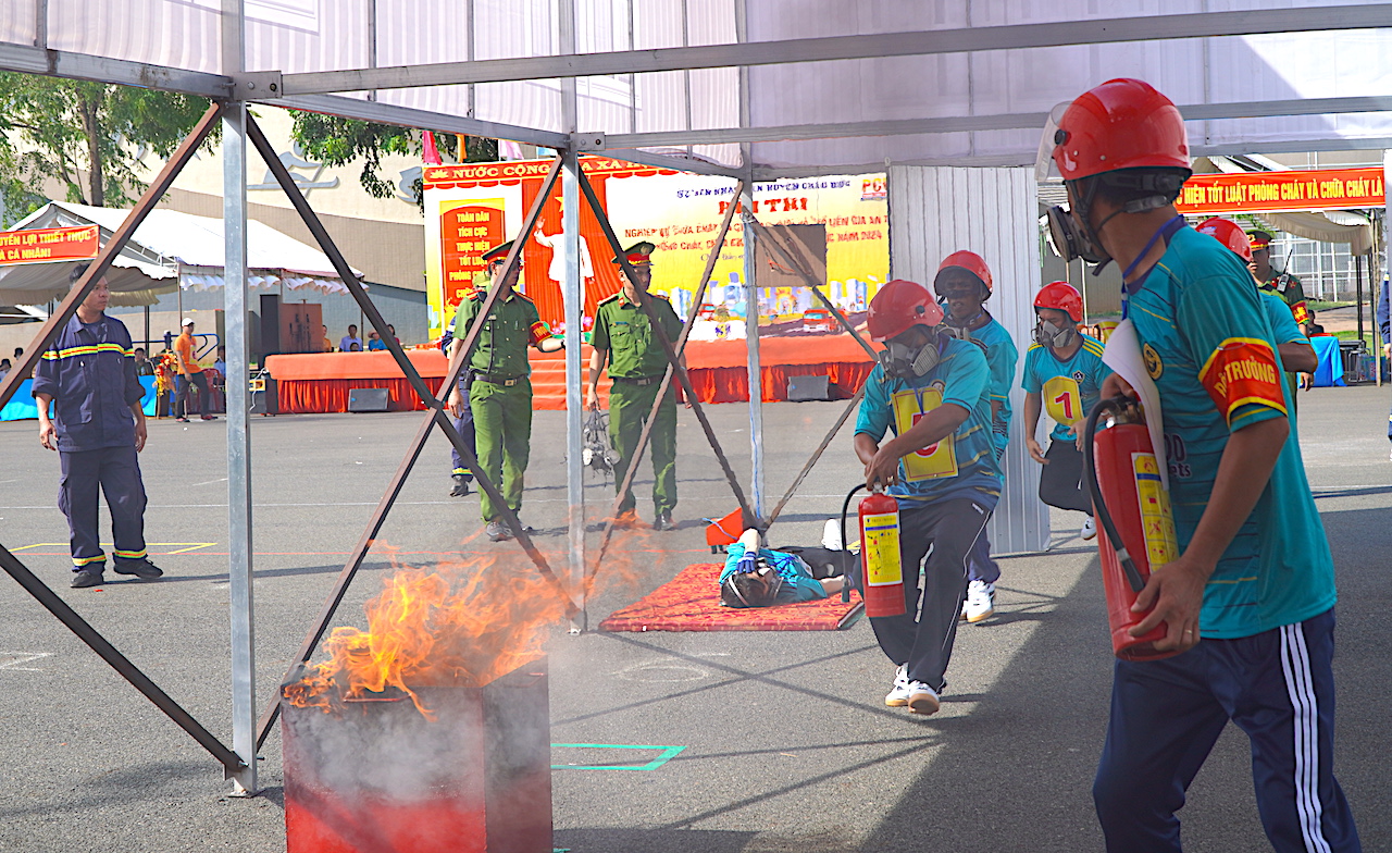 Các đội đã hoàn thành tốt phần thi, bảo đảm an toàn tuyệt đối về người và phương tiện, thể hiện được năng lực ứng phó, xử lý sự cố cháy, khả năng sử dụng thành thạo công cụ PCCC và CNCH.