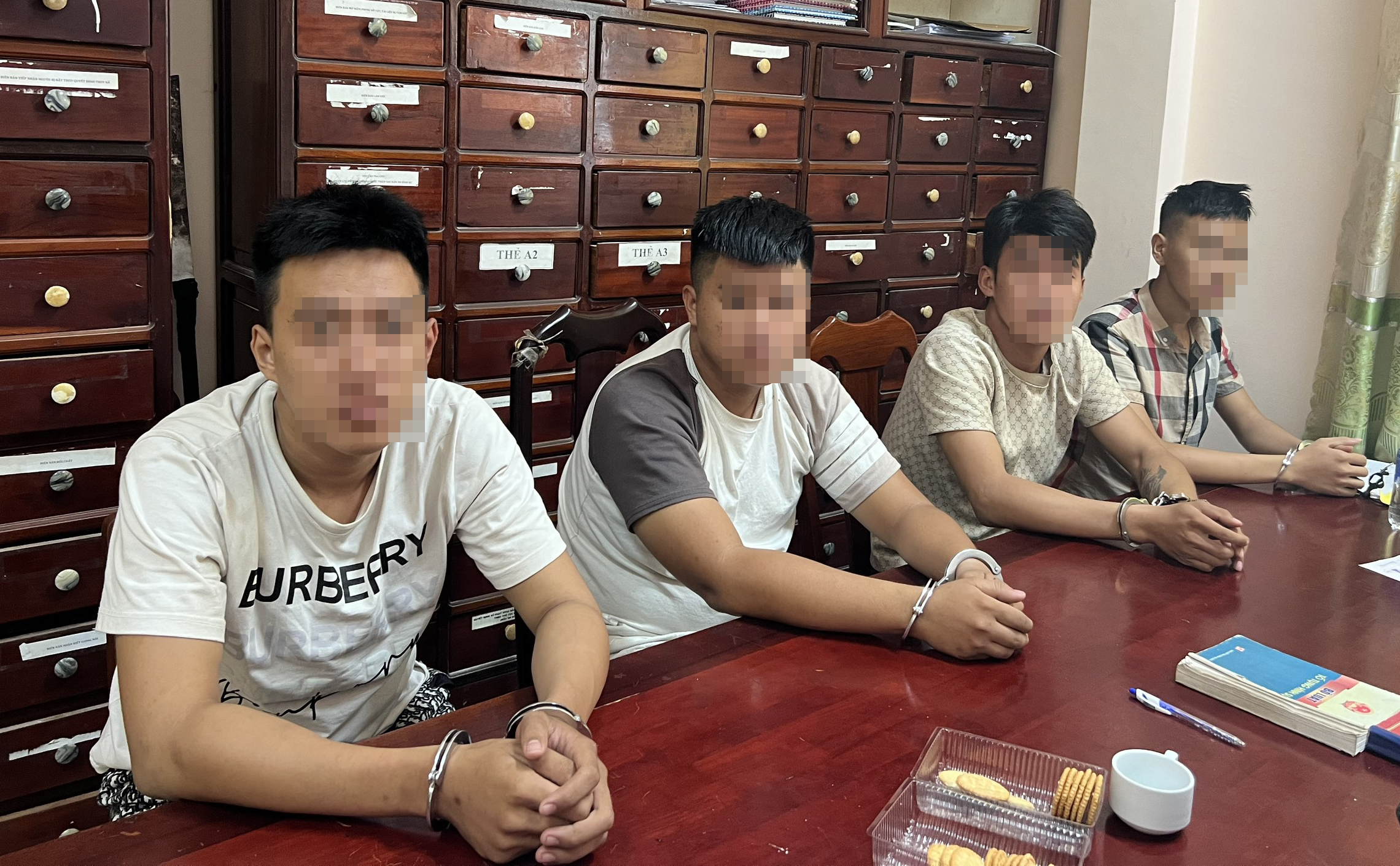 | Các đối tượng tại cơ quan công an. |