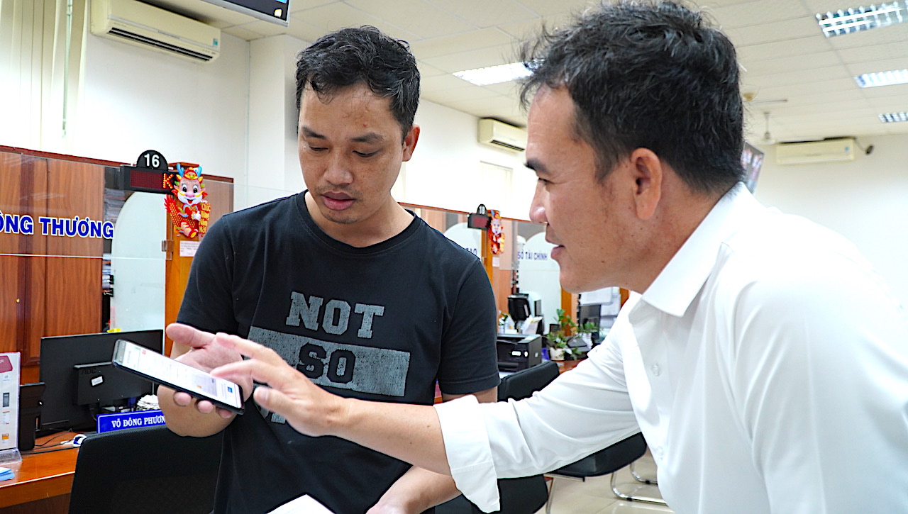 | Ông Dương Văn Thơm, Phó Giám đốc thường trực Trung tâm Phục vụ hành chính công tỉnh hướng dẫn người dân xin cấp PLLTP trên VNeID. |