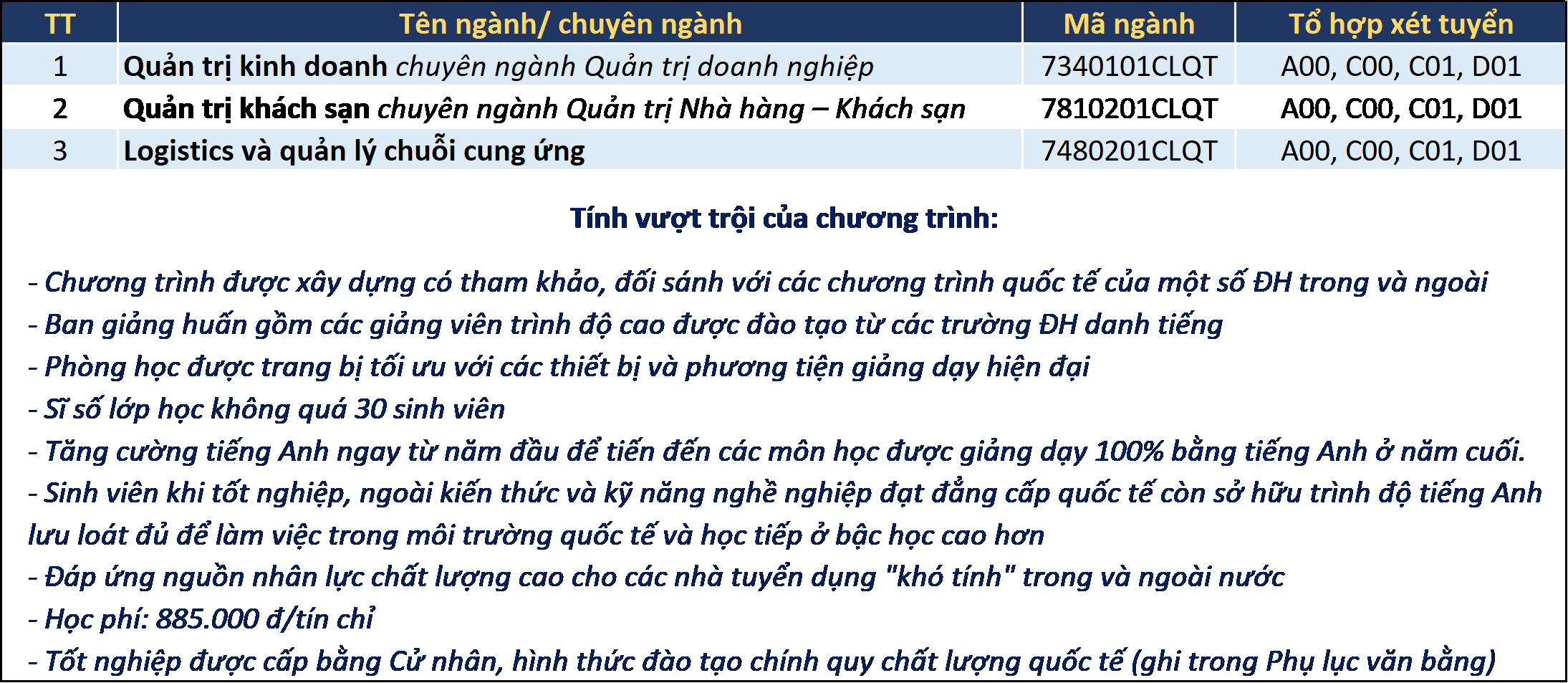 II. TUYỂN SINH ĐẠI HỌC CHÍNH QUY CHẤT LƯỢNG QUỐC TẾ