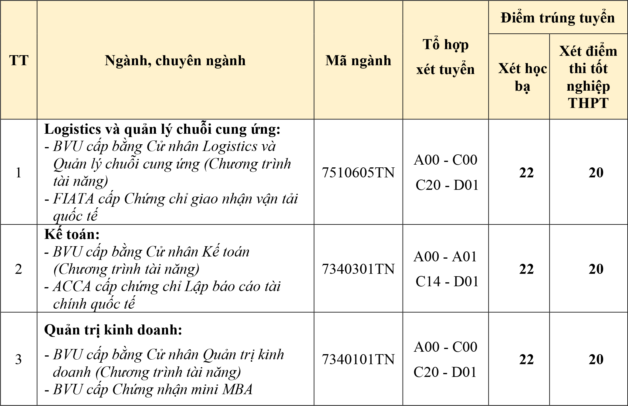 Ghi chú: Điểm trúng tuyển tại các bảng trên đã được cộng điểm ưu tiên khu vực và đối tượng theo quy chế tuyển sinh hiện hành.