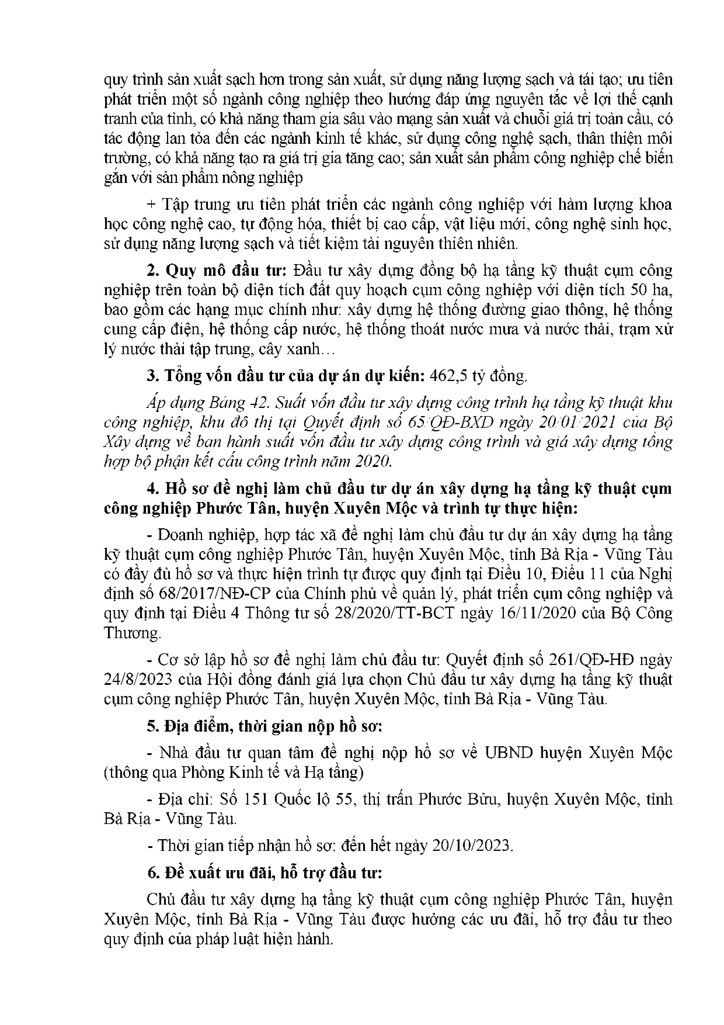 UBND huyện Xuyên Mộc thông báo về việc tiếp nhận hồ sơ đề nghị làm chủ đầu tư xây dựng hạ tầng kỹ thuật cụm công nghiệp Phước Tân, huyện Xuyên Mộc, tỉnh Bà Rịa – Vũng Tàu.
