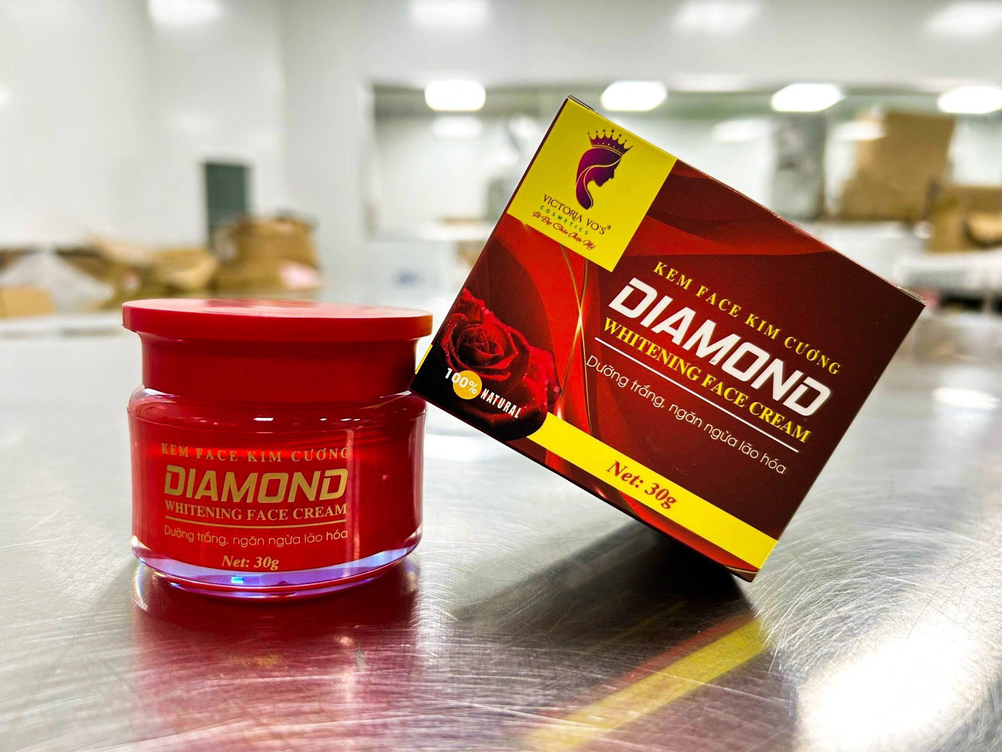 | Công ty TNHH Mỹ phẩm Victoria Võ công bố sản phẩm mới Kem Face trắng da kim cương. |