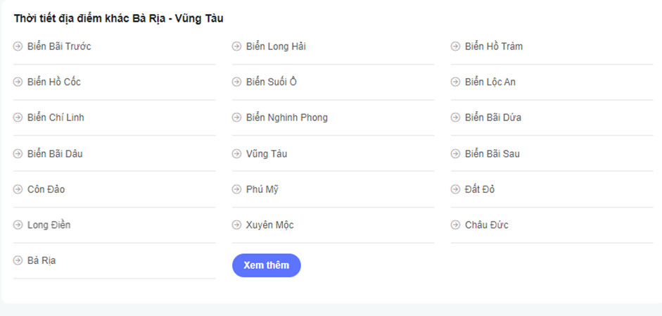 Tuy Vũng Tàu được thiên nhiên ban tặng cho một khí hậu thời tiết ôn hòa, dễ chịu nhưng đôi khi vẫn có sự thay đổi bất thường. Do đó để đảm bảo cho chuyến đi chơi thêm trọn vẹn và an toàn thì bạn cần phải cập nhật những thông tin về thời tiết một cách thường xuyên. Đồng thời cũng nên lựa chọn những kênh thời tiết dự báo chính xác và cụ thể nhất. Trong đó, Dubaothoitiet.com.vn được biết đến là một trong những trang dự báo thông tin thời tiết đầy đủ và chính xác nhất.