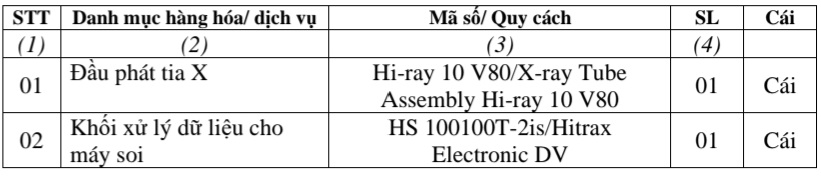 Yêu cầu chào đúng hàng hóa với quy cách, số lượng như sau: