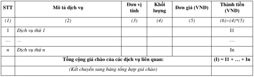 - Hiệu lực hồ sơ chào giá: Tối thiểu 30 ngày kể từ thời điểm kết thúc chào giá.