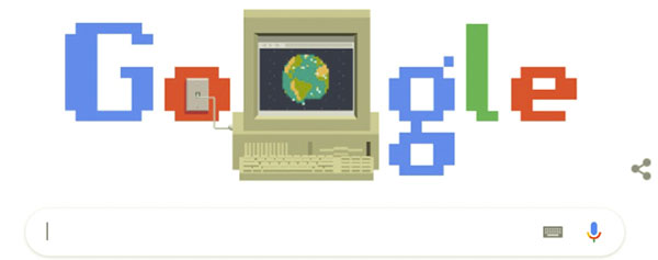 | Nhà khoa học Sir Tim Berners-Lee-“cha đẻ” phát minh ra World Wide Web và biểu tượng kỷ niêm 30 năm ngày ra đời trên trang chủ Google ngày 12-3-2019. |