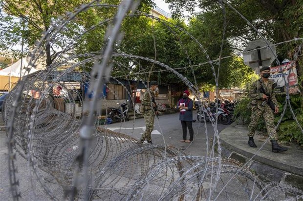 | Binh sĩ Malaysia tuần tra khu vực đang bị phong tỏa do xuất hiện các ca bệnh COVID-19 ở Cheras, ngoại ô Kuala Lumpur ngày 28/5/2021. |