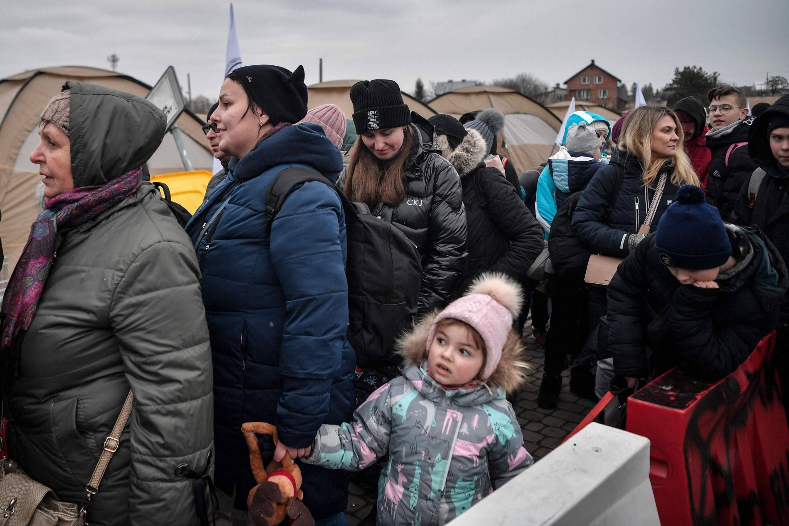 | Người tị nạn Ukraine sơ tán sang Medyka, miền Đông Ba Lan. |