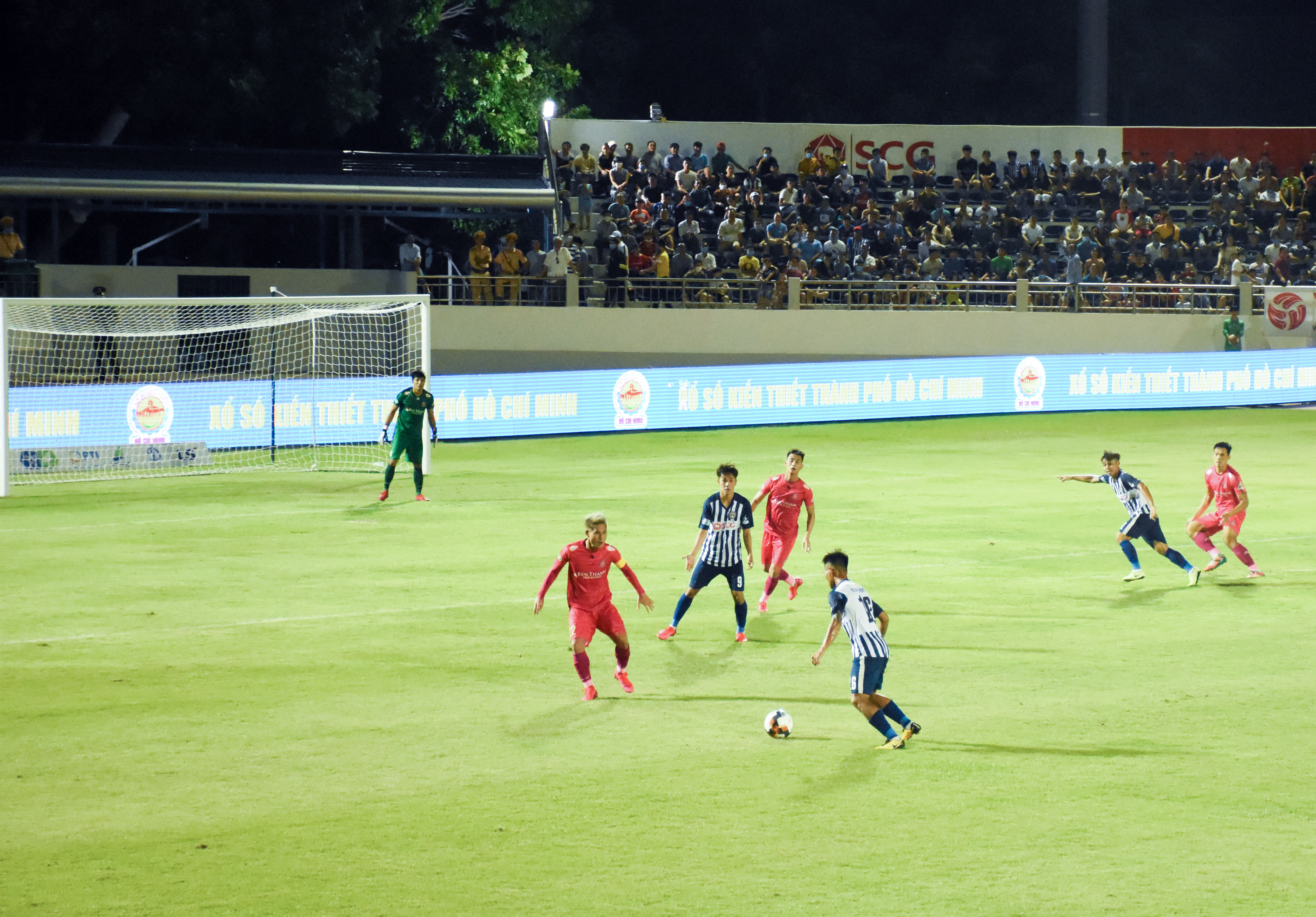 Sau khi mở tỷ số, “Ó biển” tiếp tục cầm bóng, triển khai tấn công mạch lạc. Trong khi đó, Sanna Khánh Hòa BVN dù đã củng cố lại đội hình nhưng vẫn lúng túng trong triển khai tấn công. Đến lúc này, HLV Võ Đình Tân buộc phải có những sự thay đổi. Ông tung tiền vệ Trùm Tỉnh vào sân ngay trong hiệp 1, dù tiền vệ này không có được thể lực tốt nhất. Sự thay đổi này đã có hiệu quả rõ rệt, các đợt tấn công của đội chủ nhà được tổ chức nhiều và sắc nét hơn với sự phối hợp ăn ý giữa Trùm Tỉnh và Lâm Ti Phông. Tuy nhiên, hàng phòng ngự của BR-VT vẫn chơi vững chãi. Tỷ số 1-0 được giữ đến hết hiệp đấu đầu tiên.