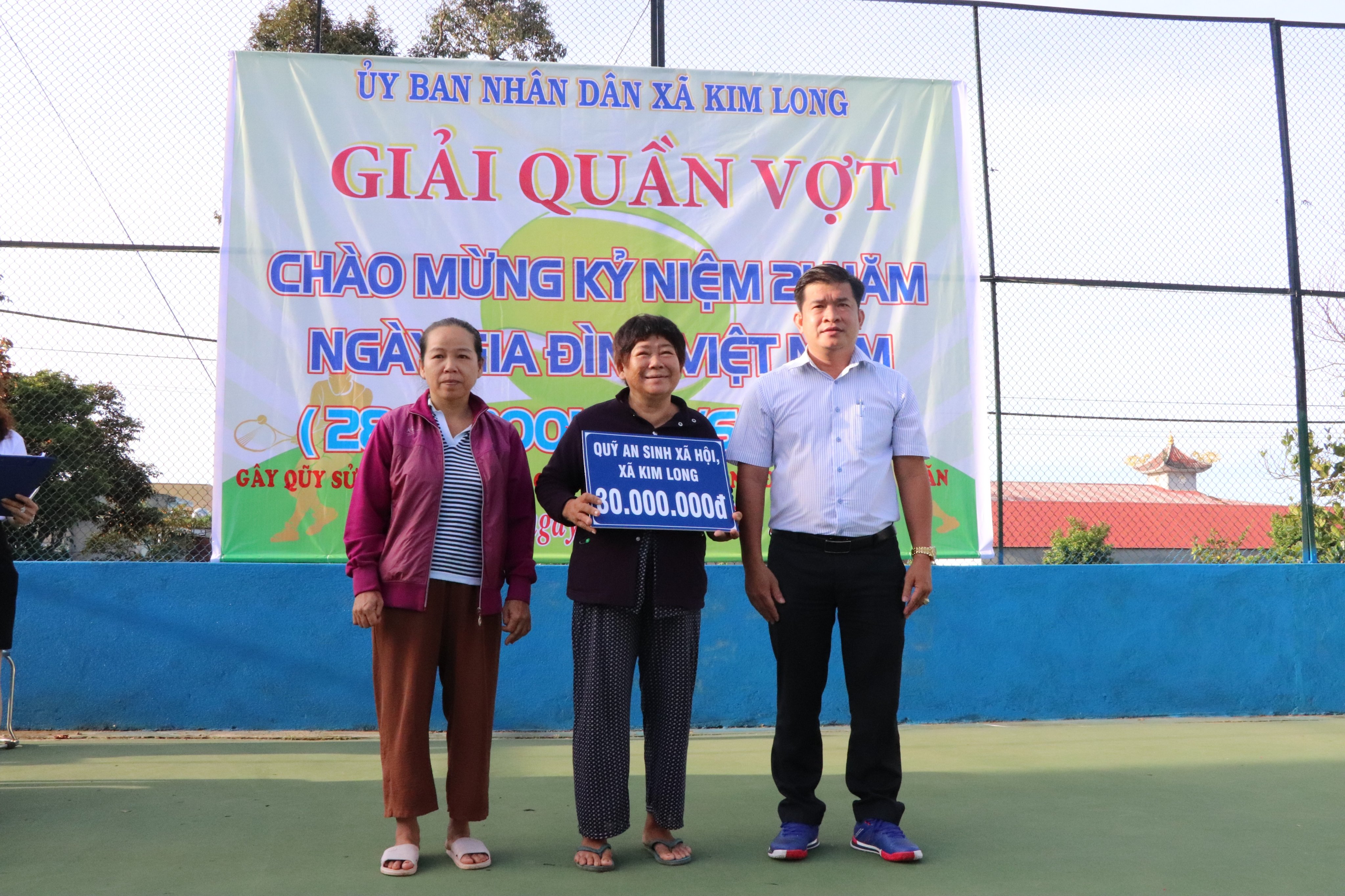 Tại lễ khai mạc, Ban tổ chức đã trao 72 triệu đồng cho bà Nguyễn Thị Bảy - hộ có hoàn cảnh đặc biệt khó khăn trên địa bàn xã Kim Long để xây nhà. Trong đó, 30 triệu đồng được trích từ Quỹ an sinh xã hội của địa phương, 42 triệu đồng từ nguồn vận động các tổ chức, cá nhân ủng hộ.
