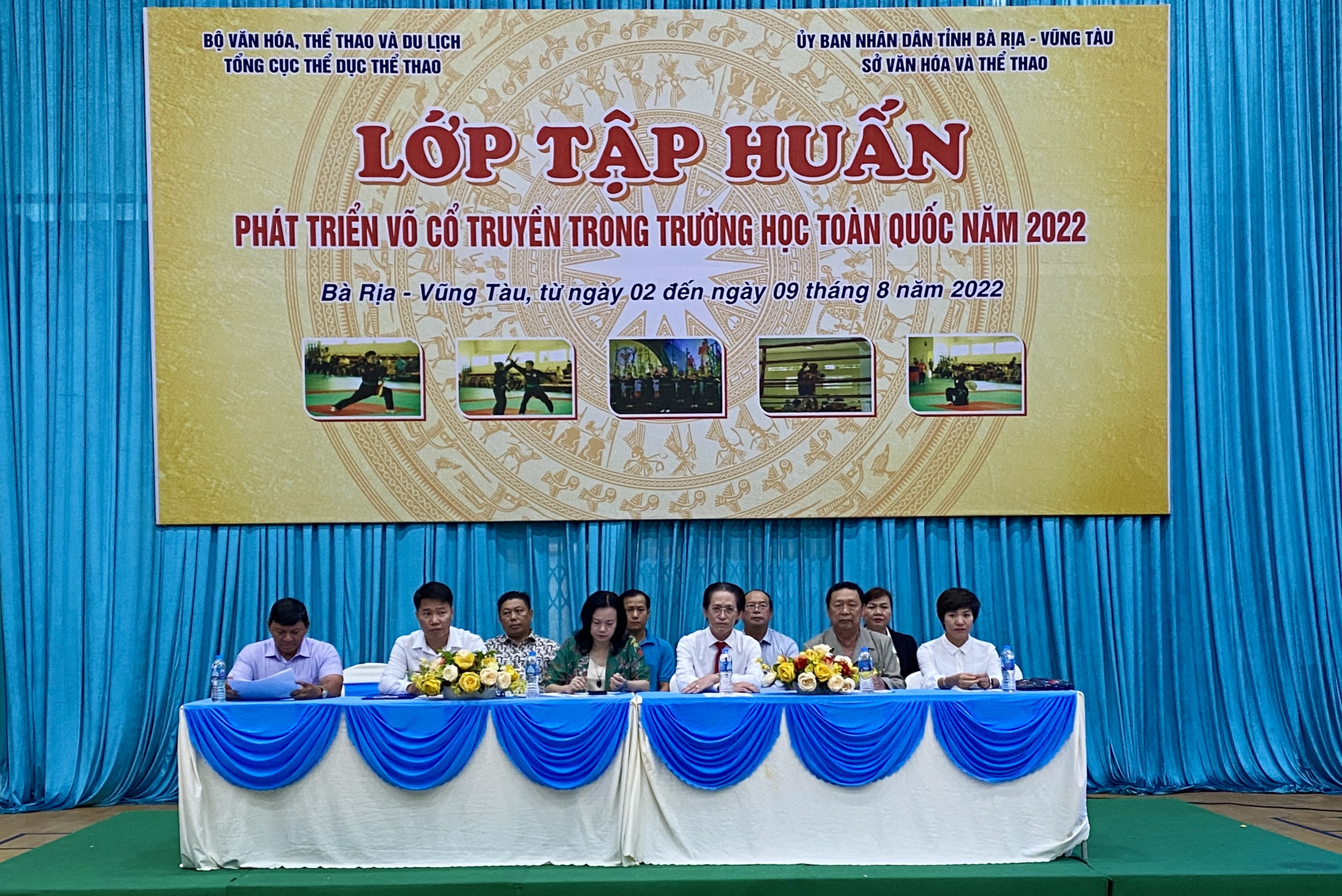 Sáng 3/8, tại Nhà thi đấu Thể dục thể thao tỉnh (100 Nguyễn An Ninh, TP. Vũng Tàu), Tổng Cục Thể dục thể thao phối hợp với Sở Văn hóa-Thể thao tỉnh Bà Rịa-Vũng Tàu tổ chức lễ khai giảng lớp tập huấn phát triển võ cổ truyền trong trường học toàn quốc năm 2022.