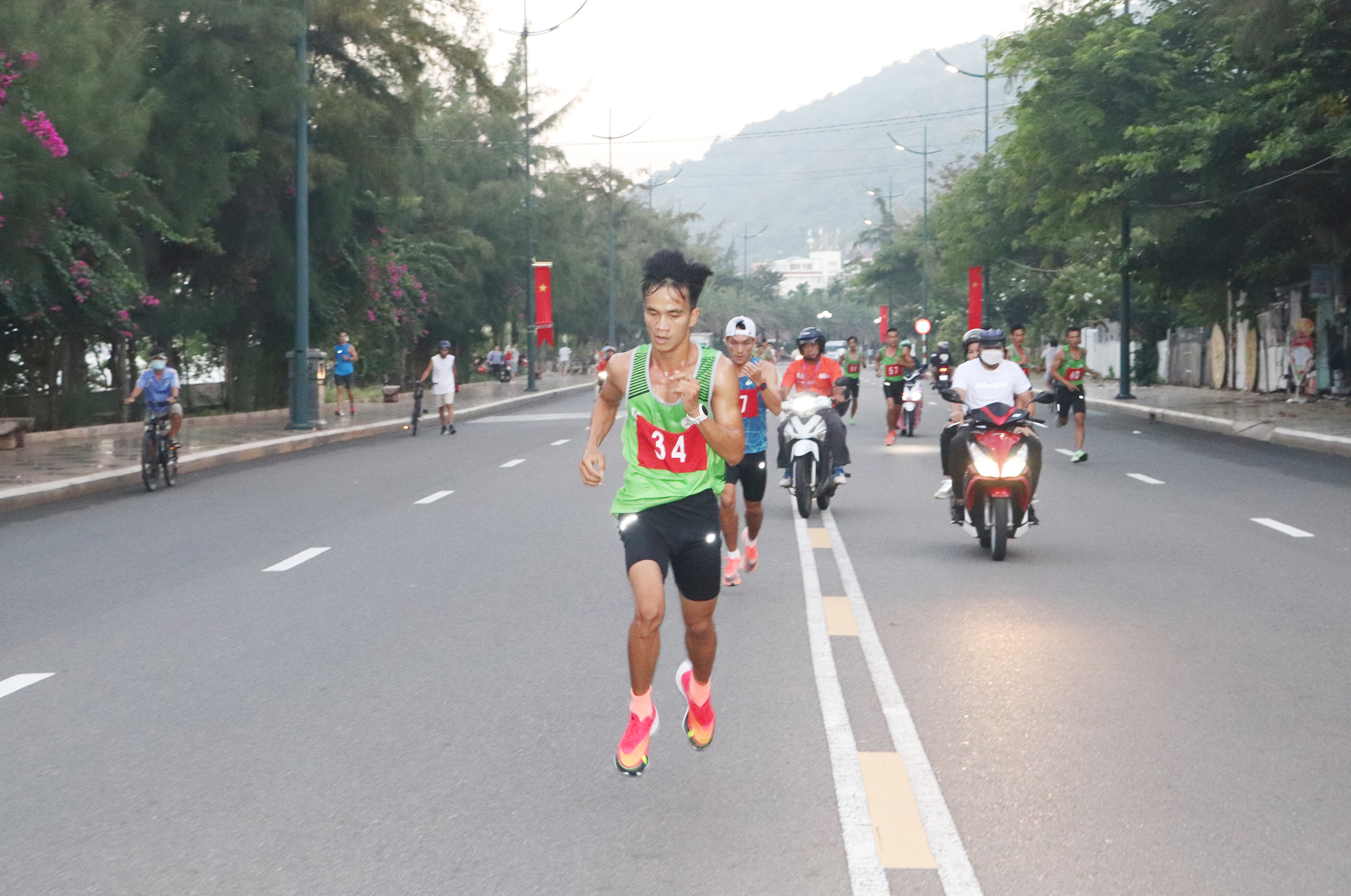 | VĐV Phạm Ngọc Phan (số đeo 34, Bình Thuận) trên đường chạy. |