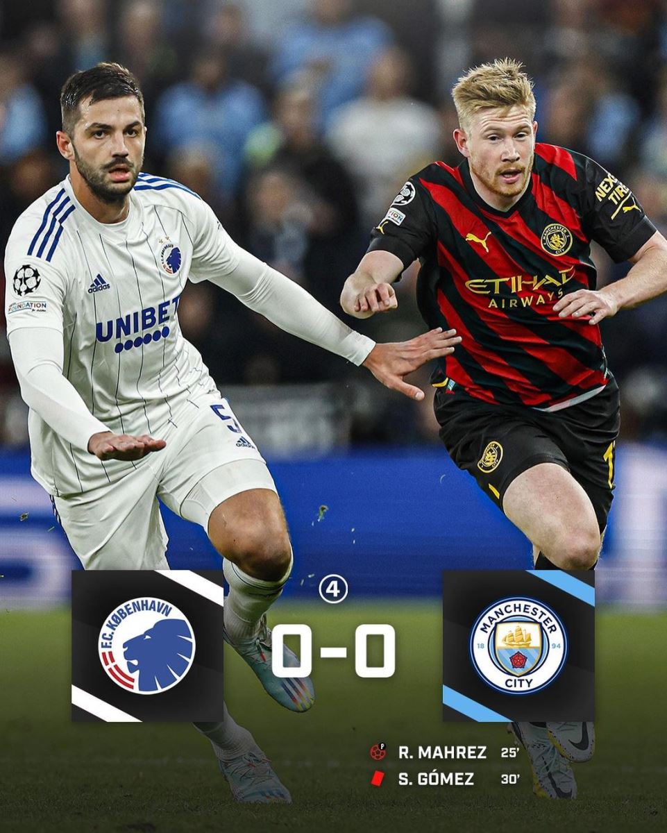 | Mặc dù hoà 0-0 với Copenhagen nhưng Man xanh là đội đầu tiên có vé vào vòng 1/8. |