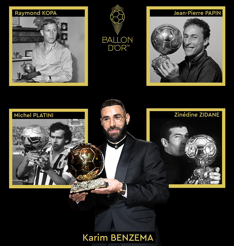 Với việc Benzema được vinh danh, đây là lần đầu tiên sau 1/4 thế kỷ, danh hiệu Quả bóng Vàng mới lại thuộc về một cầu thủ người Pháp. Lần gần đây nhất huyền thoại Pháp Zinedine Zidane đoạt Quả bóng vàng sau khi anh cùng đội tuyển Pháp đăng quang ngôi vô địch thế giới (1998). Trước đó, những cầu thủ Pháp khác từng giành danh hiệu cao quý này gồm Raymond Kopa (1958), Michel Platini (1983, 1984, 1985), Jean Pierre Papin (1991).