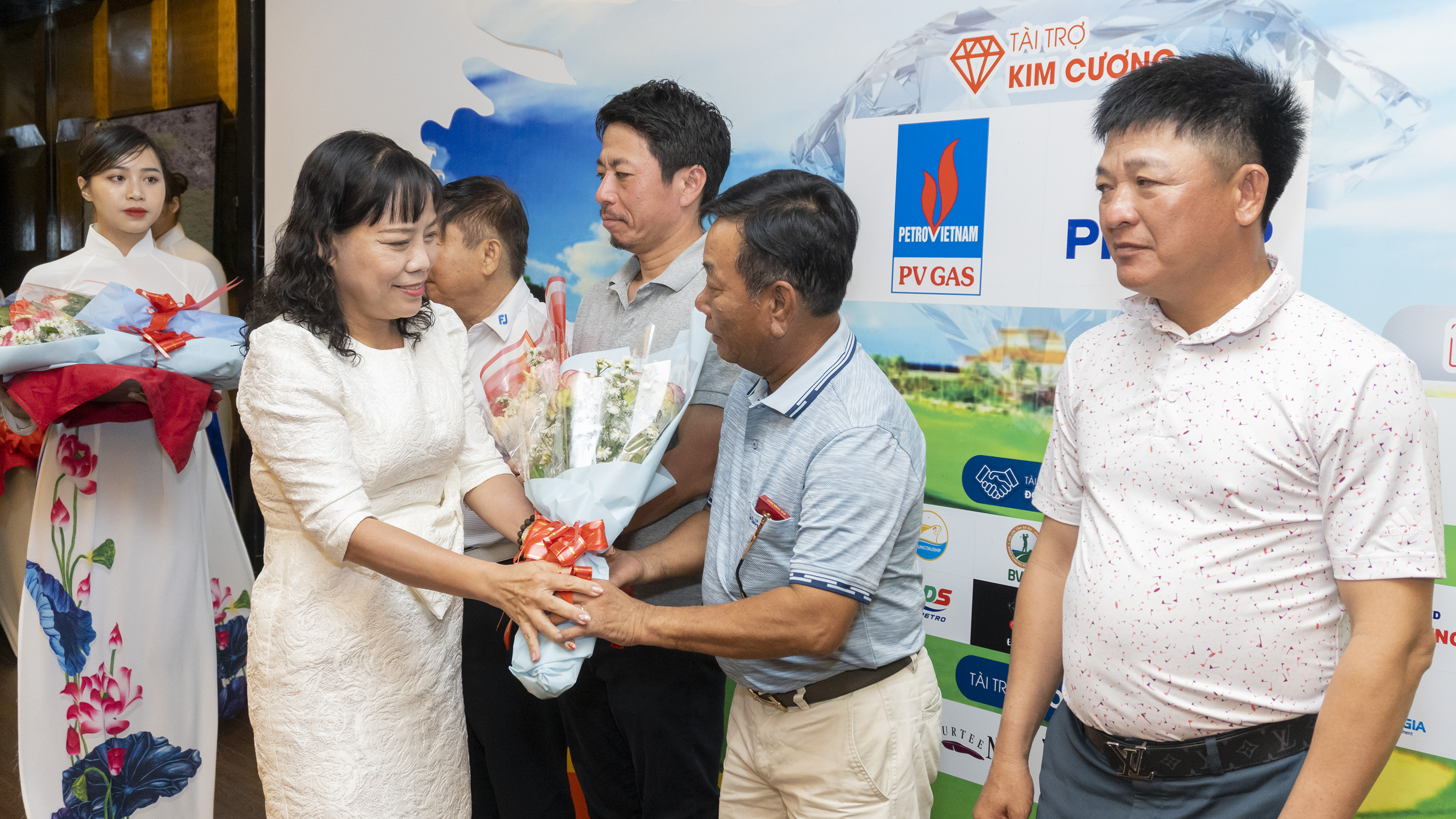 | Bà Đỗ Nguyễn Hoàng Dung, Quyền Tổng Biên tập Báo BR-VT, Phó Trưởng Ban Tổ chức Giải Golf "Vì an sinh xã hội tỉnh Bà Rịa-Vũng Tàu năm 2022" trao kỷ niệm chương và hoa cảm ơn các DN đồng hành cùng giải. |
