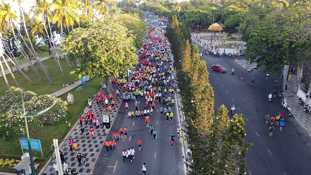Đúng 6 giờ, bà Nguyễn Thị Thu Hương, Phó Chủ tịch UBND TP.Vũng Tàu phất cờ báo hiệu xuất phát. Trong thời khắc bình minh tại thành phố biển Vũng Tàu xinh đẹp, hàng ngàn người cùng nhau sải bước, tạo hàng dài với nhiều sắc màu rực rỡ khi đi bộ từ điểm xuất phát, qua đường Hạ Long rồi lên tới đích tại cuối dốc Hải Đăng.