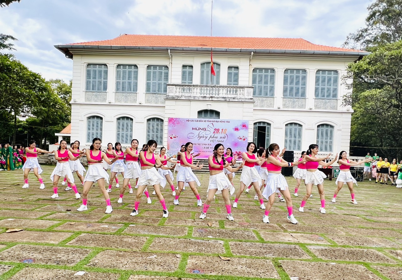 Với chủ đề “Vì phụ nữ sinh ra là để yêu thương”, sáng 15/10, tại Nhà Truyền thống Cách mạng TP.Vũng Tàu, 300 phụ nữ đến từ 12 CLB dân vũ thể thao trên địa bàn tỉnh đã cùng nhau giao lưu, nhảy đồng diễn dân vũ nhân kỷ niệm 93 năm Ngày thành lập Hội Liên hiệp Phụ nữ Việt Nam (20/10/1930 - 20/10/2023).