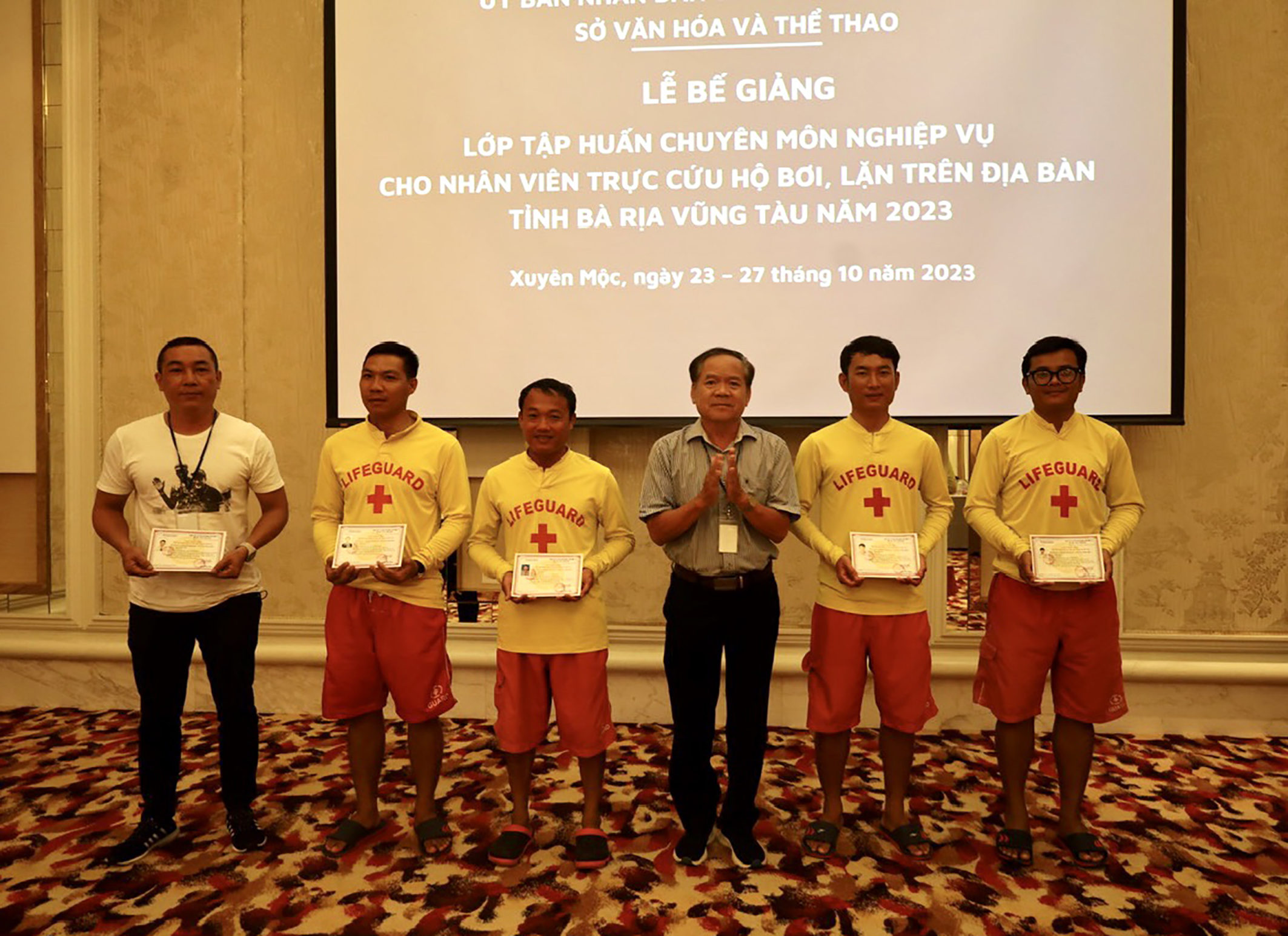 Ngày 27/10, tại The Grand Hồ Tràm (huyện Xuyên Mộc), Sở VH-TT tổ chức lễ bế giảng lớp tập huấn chuyên môn nghiệp vụ cho nhân viên trực cứu hộ bơi, lặn.