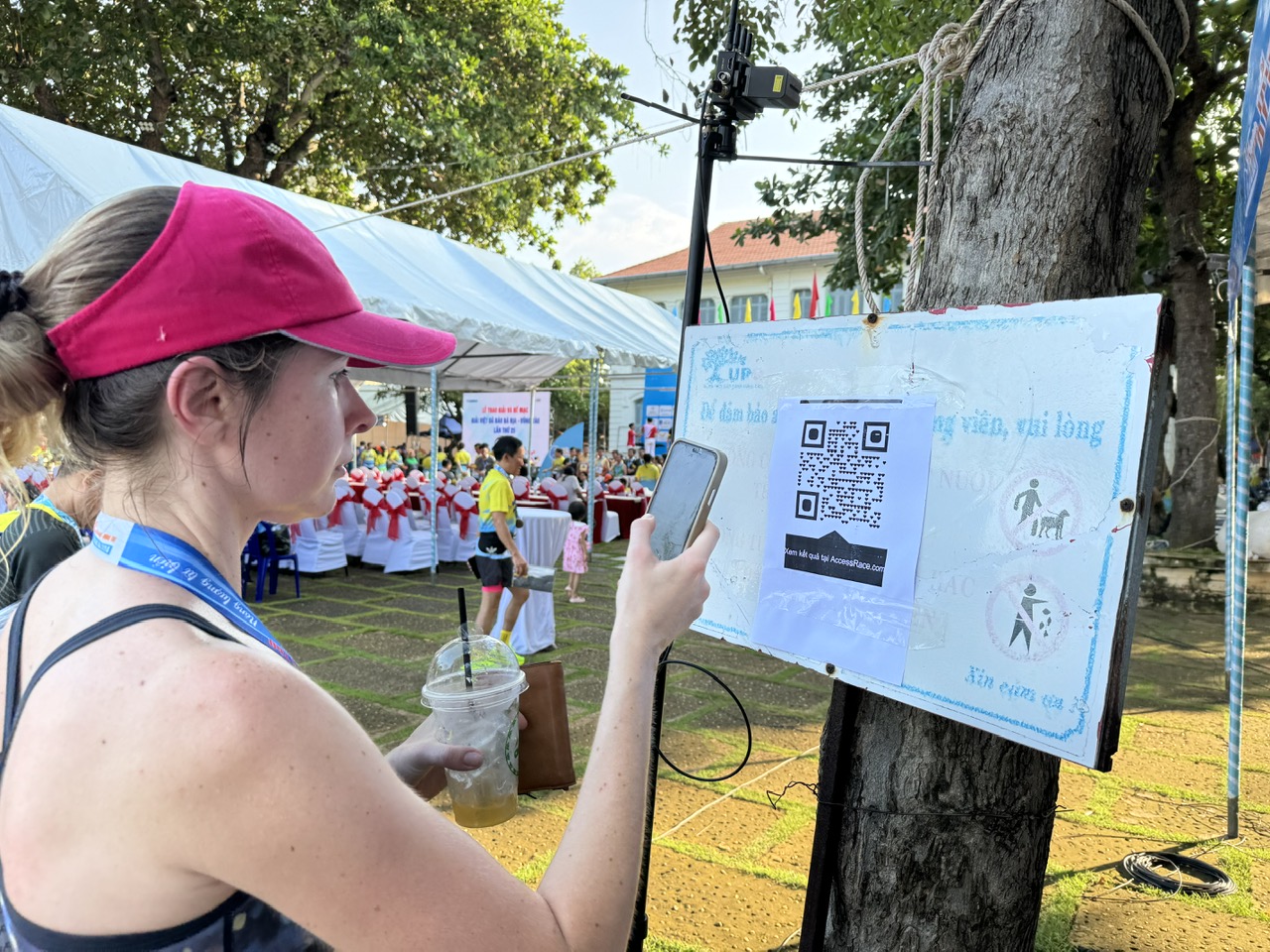 | VĐV quét mã kiểm tra đối chiếu kết quả. |