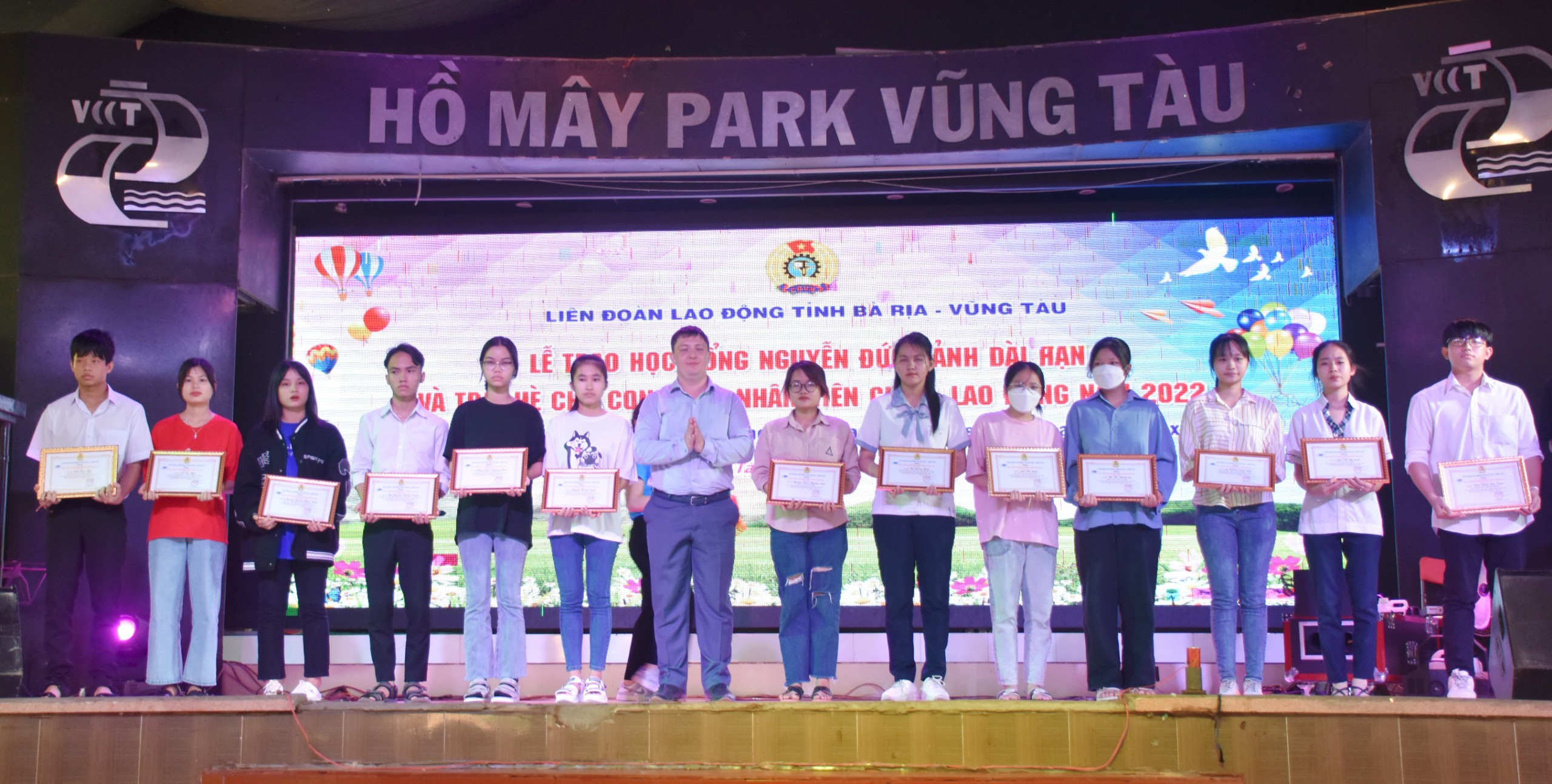 Ngày 10/8, tại Khu du dịch Hồ Mây Park Vũng Tàu (TP.Vũng Tàu), 200 HS-SV là con CNVC-LĐ có thành tích học tập xuất sắc đã tham gia chương trình trại hè và nhận học bổng Nguyễn Đức Cảnh do ĐLĐ tỉnh tổ chức.