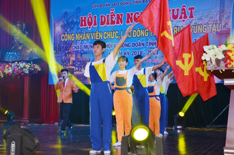 | Tiết mục ca múa “Công nhân trên chặng đường mới” của LĐLĐ huyện Đất Đỏ. |