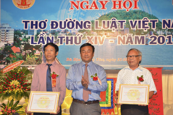 Dịp này, Sở VH-TT tỉnh đã trao giấy chứng nhận cho các tập thể và cá nhân có sáng tác hay về BR-VT; Hội thơ Đường luật Việt Nam khen thưởng các tập thể, cá nhân có sáng tác xuất sắc trong năm 2018 và trao Cờ đăng cai Ngày hội thơ Đường luật Việt Nam lần thứ XV, năm 2020 cho tỉnh Hà Tĩnh.