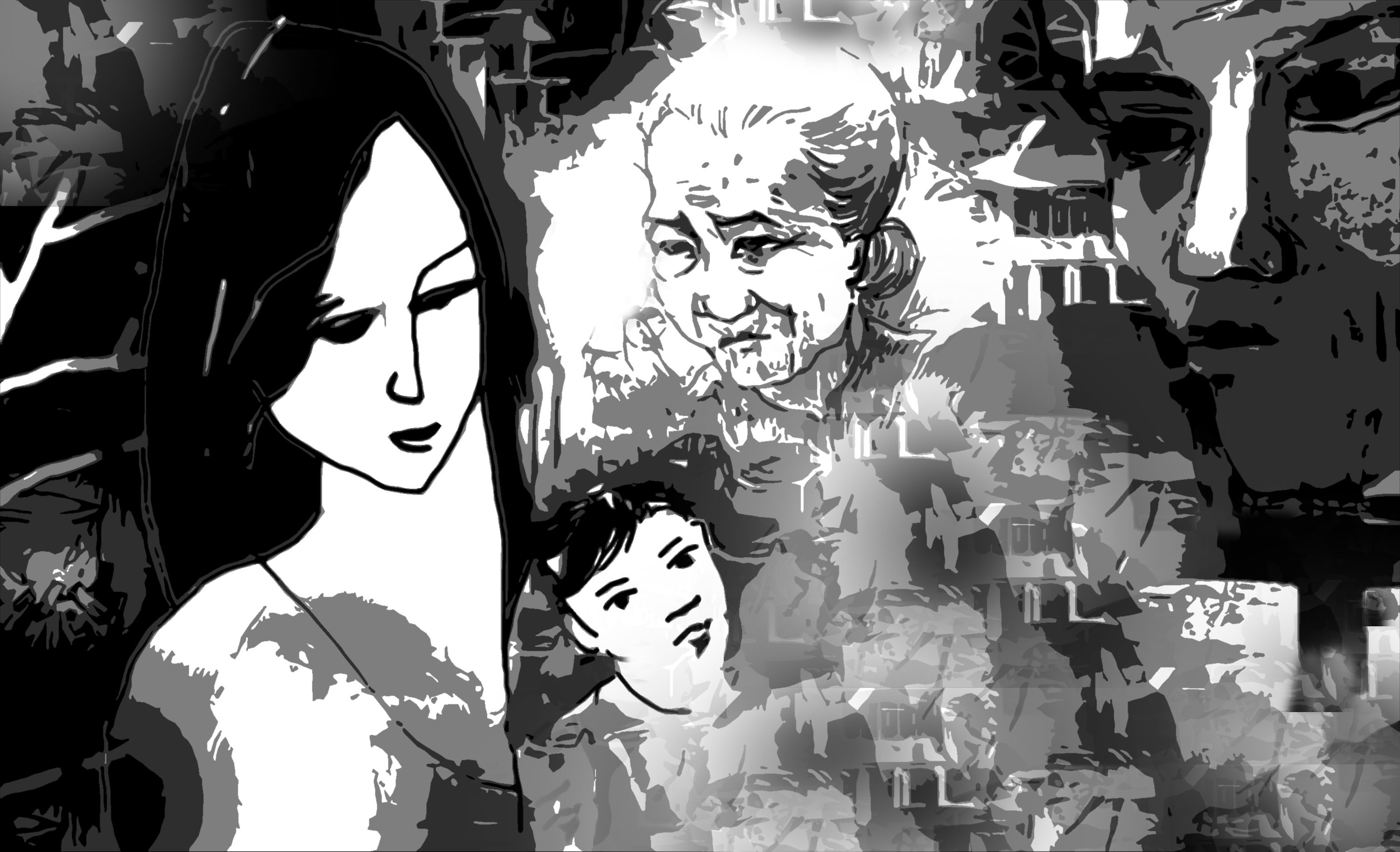 Bà bảo cô Lân là một người phụ nữ hiền lành, rất yêu thương hai bố con nó. Chính bà là người khuyên bố nên cưới cô Lân. Bà đưa hai tay nâng mặt nó lên, lau đi những giọt nước mắt tèm nhem trên đôi má bầu bầu của nó, rồi nhìn thẳng vào mắt nó, bà nói: