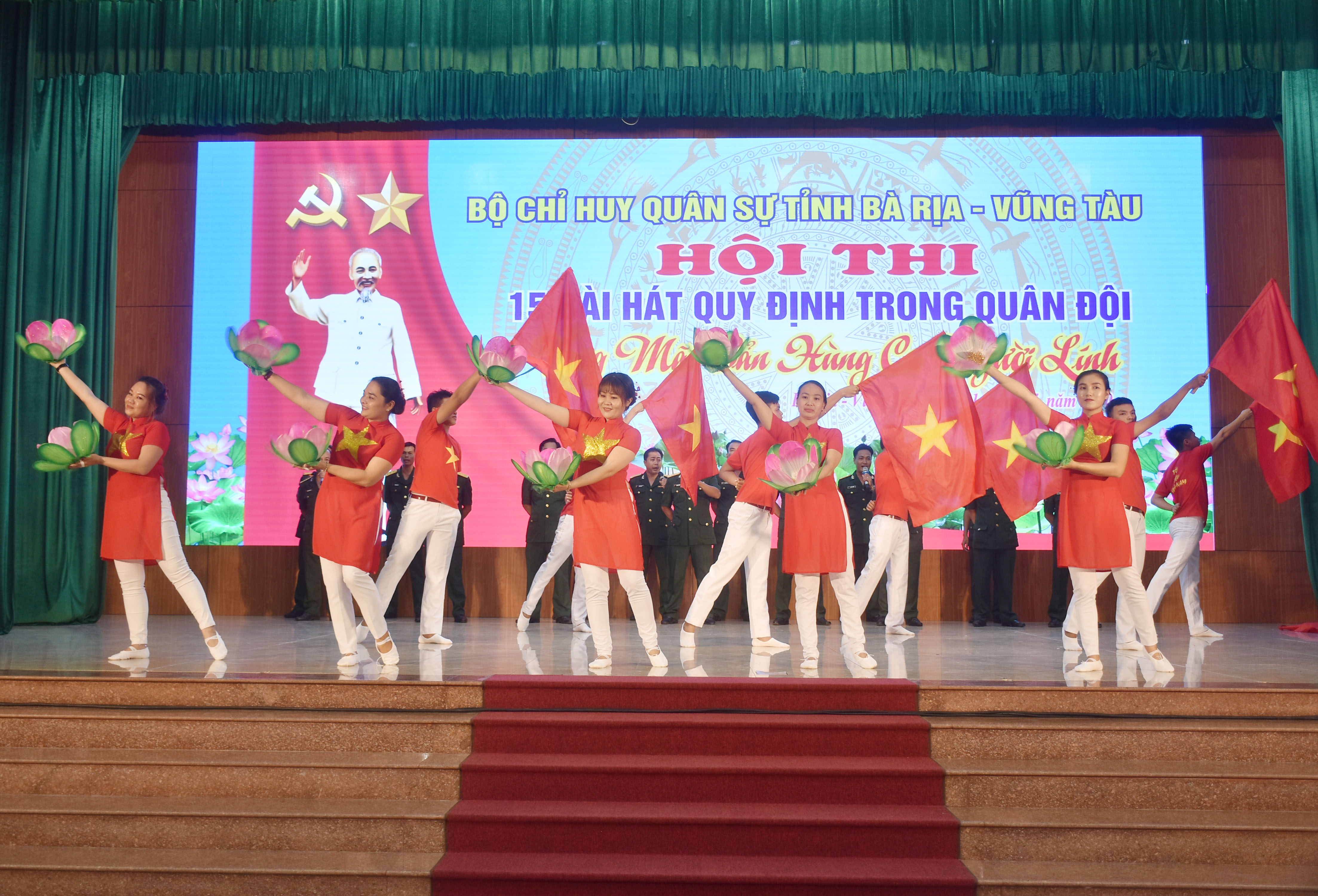 | Phần dự thi của Ban CHQS huyện Long Điền với bài hát “Vì nhân dân quên mình”. |