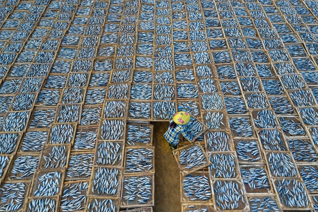 Bức ảnh đoạt giải kể trên thể hiện một phụ nữ đang phơi những khay cá đối ở cảng cá Long Hải. Những khay gỗ đựng cá khi nhìn từ trên cao tạo cảm giác như người phụ nữ này đang dệt một tấm thổ cẩm khổng lồ.