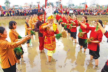 | Tái hiện lại cảnh Vua Hùng dạy dân cấy lúa ở phường Minh Nông, thành phố Việt Trì. Ảnh: ANH TUẤN |