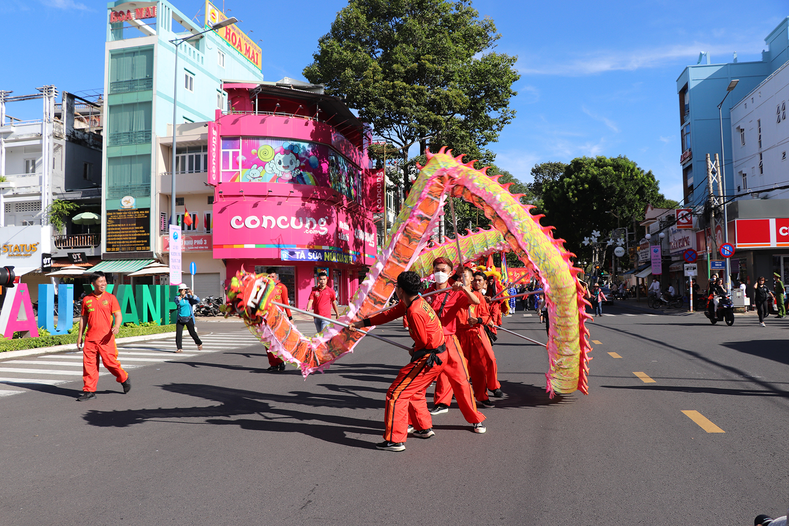 | Đoàn rước Ông diễu hành trên đường phố, tạo không khí lễ hội tới người dân và du khách của thành phố biển. |