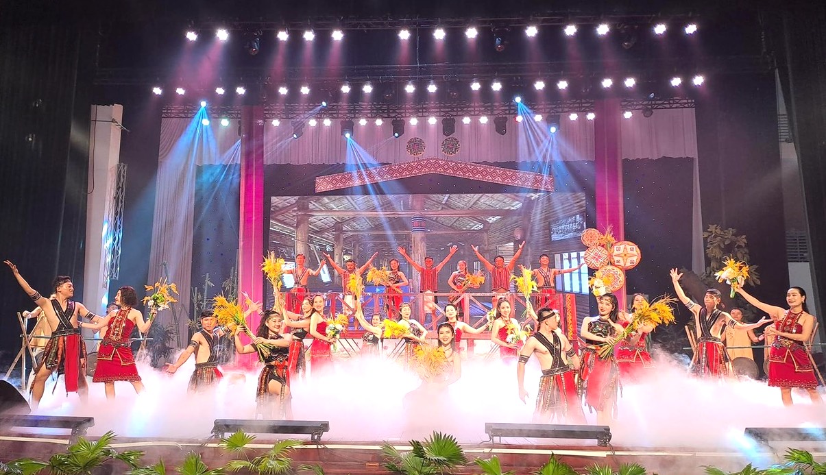 | Tiết mục hát múa Sắc màu Châu Ro do nghệ nhân Châu Ro, tốp ca múa nam nữ trình diễn. |