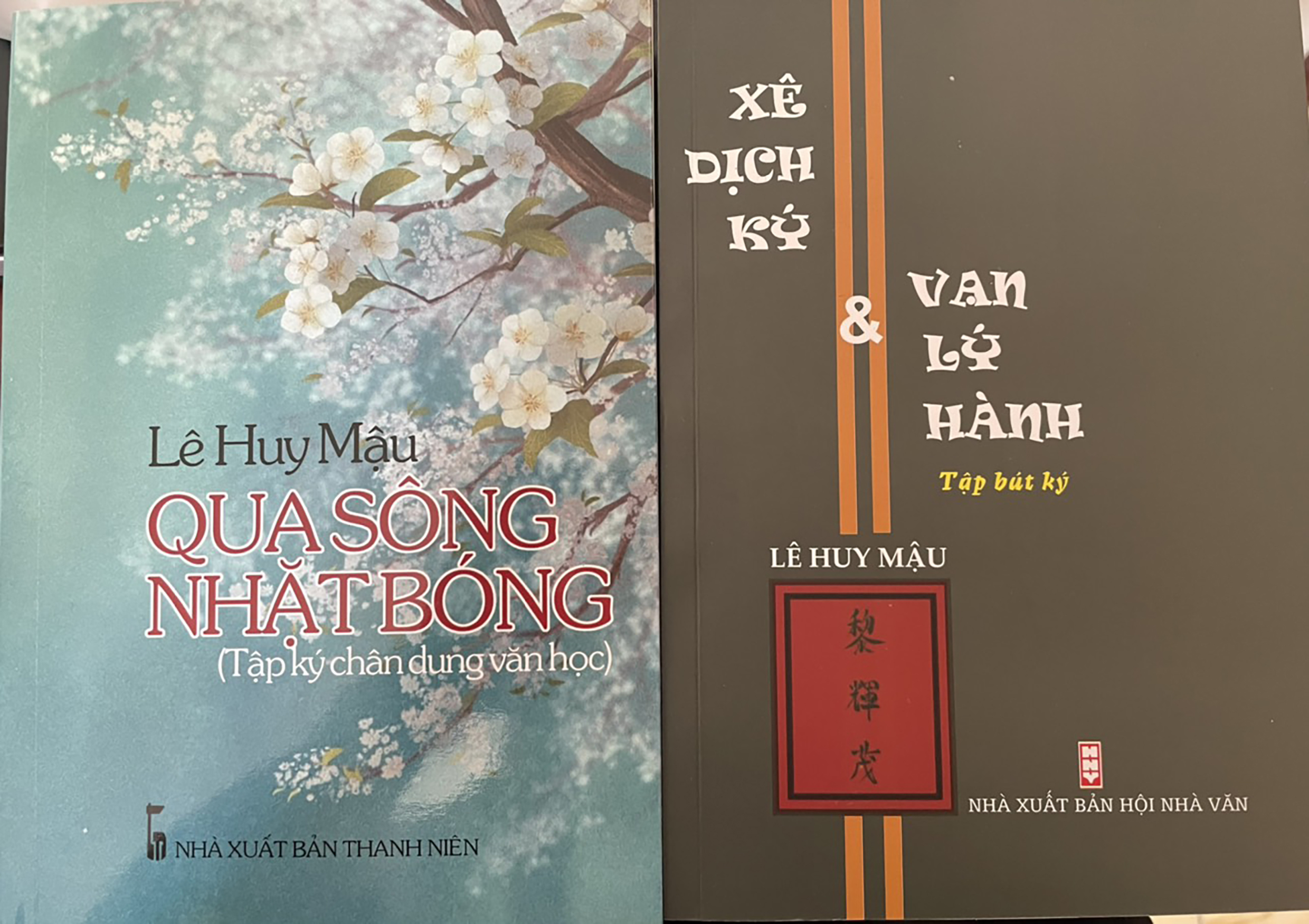| Bìa 2 cuốn sách mới Qua sông nhặt bóng và Xê dịch ký và vạn lý hành. |