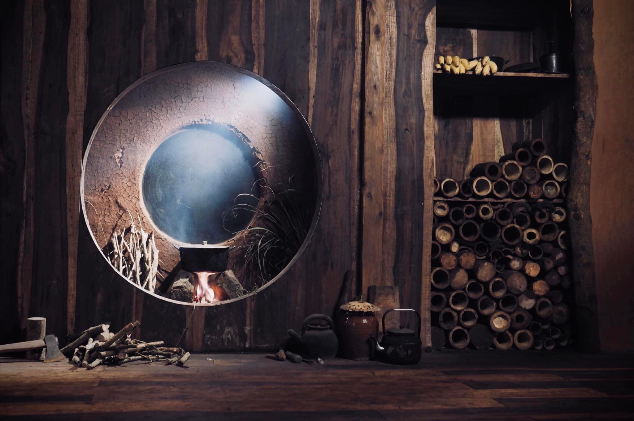 Mỗi góc trong căn nhà đều có dấu ấn riêng, nhưng có lẽ ô bếp tròn là đặc biệt nhất, được anh chăm chút từng xíu. Bên phải là kệ gỗ trang trí ống tre ở trên xếp củi phía dưới, bên trái là nơi bày biện chén bát, gia vị, kệ đặt rau củ hái từ vườn. Mấy chiếc kệ được anh cùng thợ hì hụi cưa xẻ gỗ, đo đạc, đóng cột mấy tuần mới xong. Bởi vì San và chị gái rất thích nấu ăn, nên anh thiết kế góc bếp mộc mạc mà đẹp hoài cổ như trong bức hoạ báo. Ngày nhóm bếp đầu tiên, anh chụp cho San một tấm hình đứng bên kệ xếp cắt trái cây, chỉ thấy đằng sau lưng, nhưng anh gật gù khen mãi. Bức ảnh trở thành hình đại diện trên trang cá nhân của anh từ đó đến giờ.