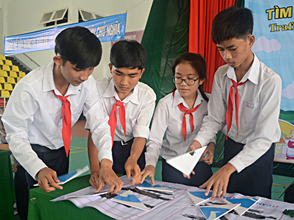 | HS Trường THCS Long Tân (huyện Đất Đỏ) thi lắp ghép biển báo giao thông. |