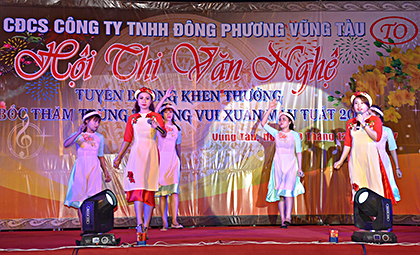 | Công nhân Công ty TNHH Đông Phương Vũng Tàu (KCN Đông Xuyên, TP.Vũng Tàu) thi biểu diễn văn nghệ chào mừng năm mới 2018. |