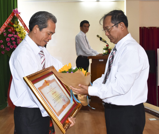 | Ông Phạm Minh An, Giám đốc Sở Y tế tặng Bằng khen của Thủ tướng Chính phủ cho các cá nhân. |