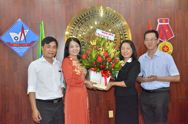 | Bà Lê Thị Xuân, Phó Tổng Biên tập Báo Bà Rịa-Vũng Tàu chúc mừng cán bộ, nhân viên Phòng GD-ĐT TP. Vũng Tàu nhân Ngày Nhà giáo Việt Nam 20-11. |