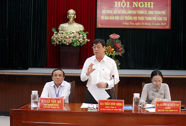 Chiều 16/11, Thành ủy Vũng Tàu tổ chức Hội nghị đối thoại, gặp gỡ giữa lãnh đạo Thành ủy, UBND thành phố với Ban Giám hiệu các trường học thuộc TP.Vũng Tàu.